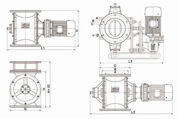 型號 | A | B | C | H | Q | L1 (內(nèi)) | L2 (外) | L3 (鏈) | n-Ф | 工作溫度 ℃ | 轉(zhuǎn)速 轉(zhuǎn)/分 | 電機功率KW | |